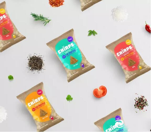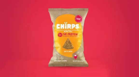 可食用昆虫市场正在迅速增长,而如何通过包装向更多消费者普及这些食物也成为了不少品牌尝试解决的问题。最近,加拿大创意代理公司 Arbiter Creatvie 就为从哈佛大学创新实验室孵化的 Six Foods 设计了蟋蟀薯片 Chirps 的包装,看起来简洁又可爱:作为讲解员的那只小蟋蟀和巨大的对话框形成了鲜明的对比,以强调小身材所拥有的高蛋白质含量。